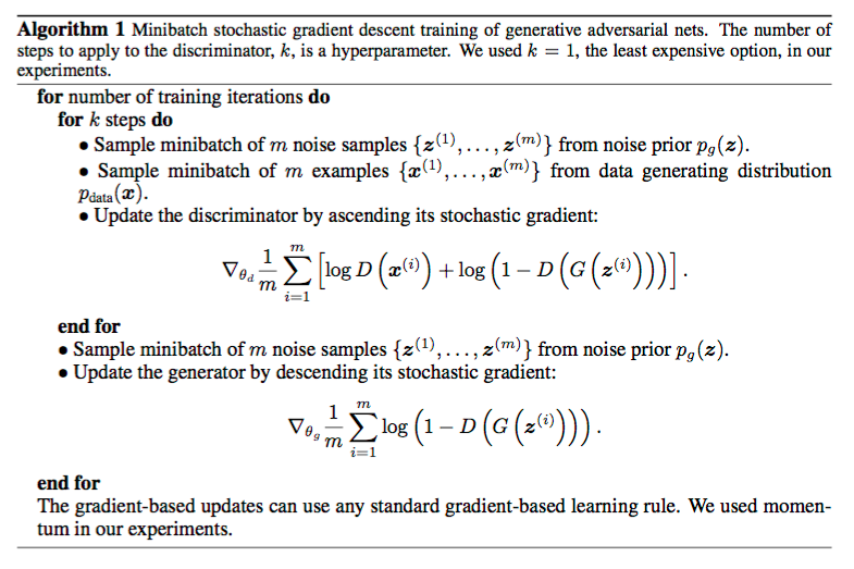 Now, let’s declare the Adversarial Process for training this GAN. Here’s the training algorithm from the paper: